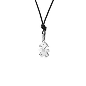 Ciondolo I Diamantini con sagoma bimba in oro bianco impreziosito da cuore con pavé di diamanti